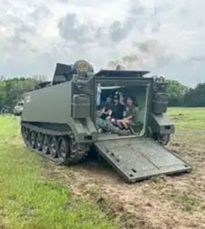 Visit the transportation station for the opportunity to ride in a Vietnam Era M113 for two loops around the arena!