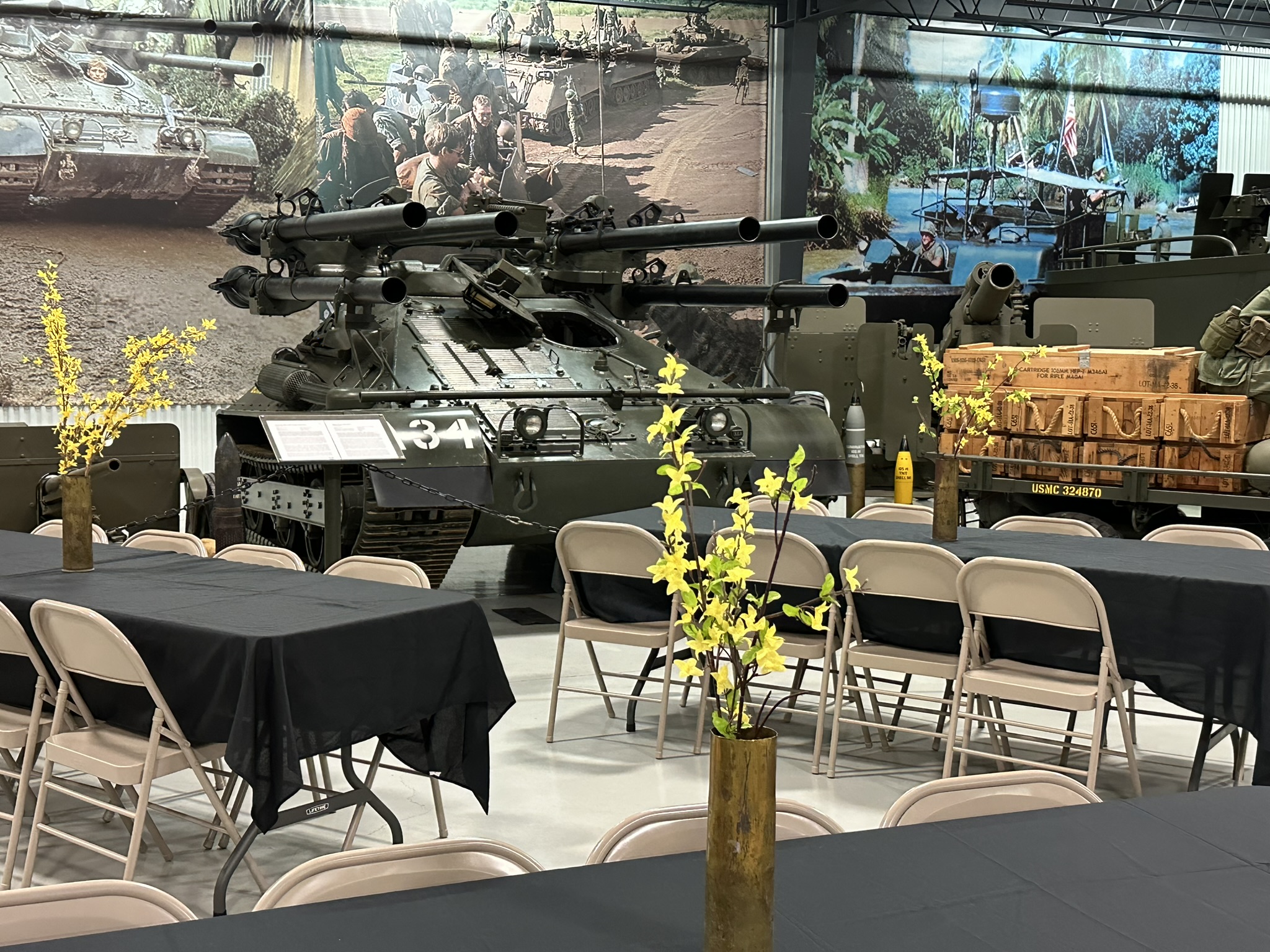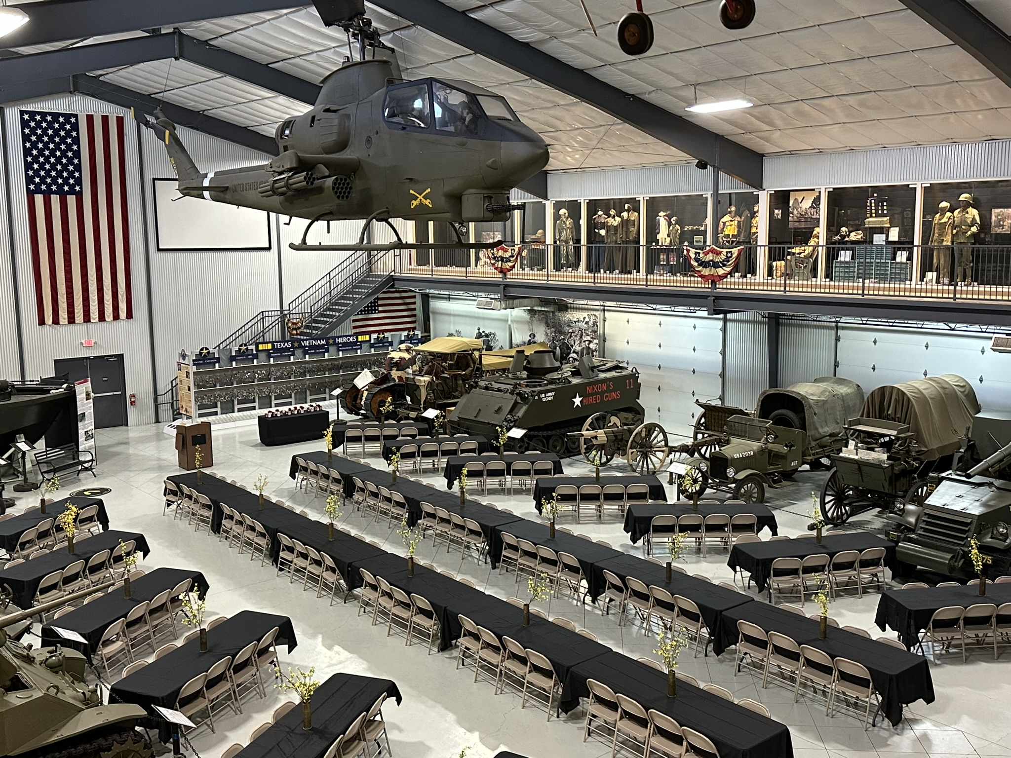 Are you looking for a unique location for your next event? Give your guests an unforgettable experience as they dine in our main hall, surrounded by tanks and cannons, with a Cobra Helicopter above their heads! Or host your business lunch or evening meeting in Acklen Hall. Thinking outdoors? We’ve got that covered, too! Do you have a young military enthusiast? We have a variety of birthday party packages guaranteed to fit any budget!