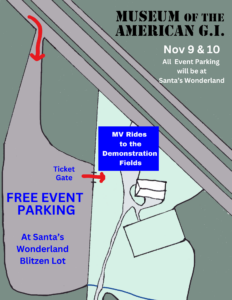 Parking is FREE at Santa’s Wonderland’s Blitzen Lot. From there, you enter the museum grounds through the admission tent. Upon entering the museum property, you will ride in a WWII 2 1/2 ton CCKW or modern HUMVEE to the reenactment fields where all the activities will occur.