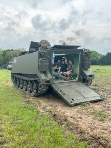**Health & Safety Regulations for ride participants: Safety is our number one priority for anyone who rides in our vehicles. Tank Ride participants must be at least 7 years or older, with a minimum height of 52 in, and able to climb on and off the vehicle and in and out of the hatches unassisted. Tank Ride participants must have no underlying health conditions that would preclude riding in “off-road” conditions. All Tank Ride participants (or their legal guardians) must sign a hold-harmless agreement. The Museum of the American G.I. and its crew reserve the right to refuse any participant (tank ride or half-track ride) who they deem unfit or unsafe to themselves, other participants, or the crew. The ticket price will be refunded if the ride is canceled for safety reasons.