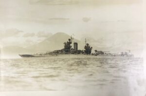 A similar photo is displayed on the website of the Naval History and Heritage Command titled “In the Shadow of Fujiyama.” The caption reads that the USS New Mexico (BB-40) anchored in the Tokyo Bay area at the end of World War II in late August 1945. The New Mexico History Museum captures and provides more information and photos of USS New Mexico (1918-1947).