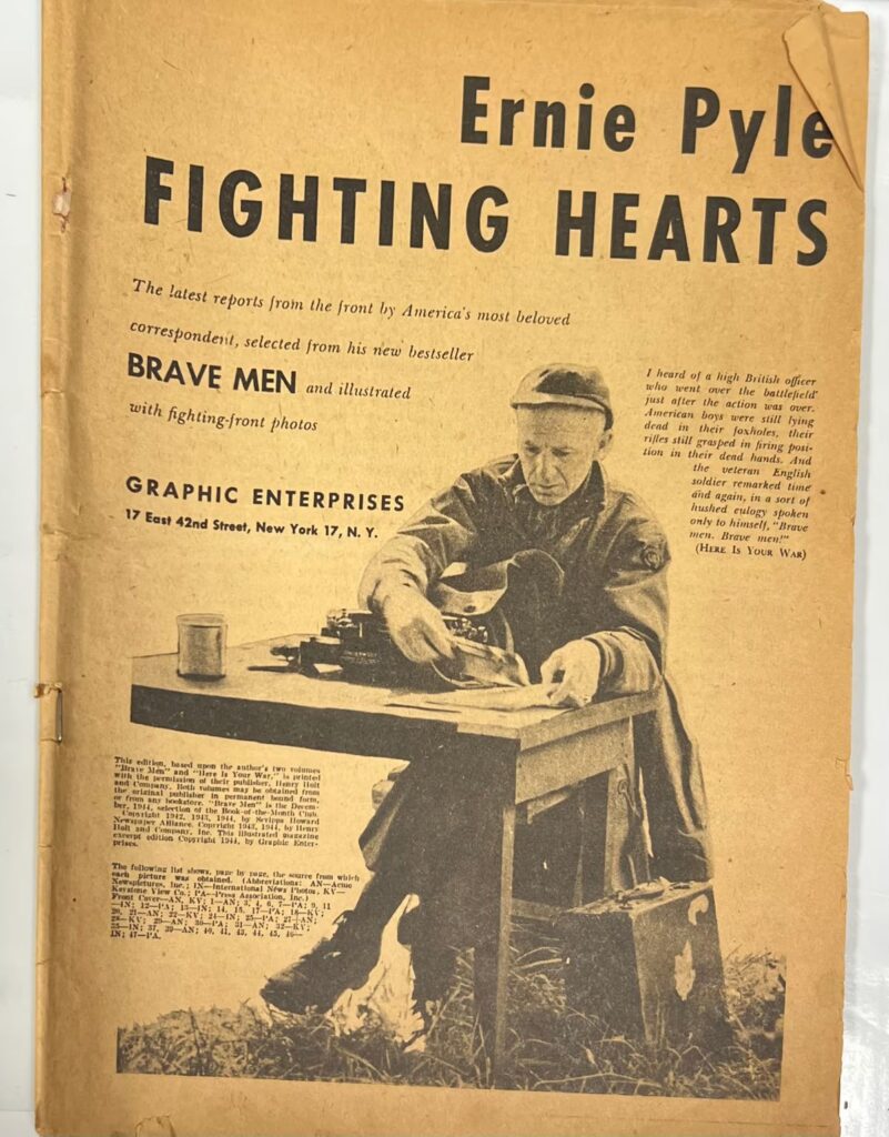 While living alongside the men, he welcomed the opportunity to share and document their brotherhood, losses, and wins. He became accustomed to weeks without bathing and shaving. He washed his feet in a steel helmet and rested his head on the unforgiving ground. In 1944, he suggested that soldiers receive “combat pay” like airmen receive “flight pay.” This led Congress to enact a law creating “The Ernie Pyle Bill” that provided combat infantry with an additional $5 to $10 a month.The U.S. Army also adopted Pyle’s suggestion of providing overseas service bars on uniforms to designate six months of overseas service Despite the chaos of war, he was passionate about documenting the G.I.s’ lives. He weaved those experiences into a narrative of unparalleled war coverage through a simple storytelling style and first-person narratives, which made him popular with readers worldwide.